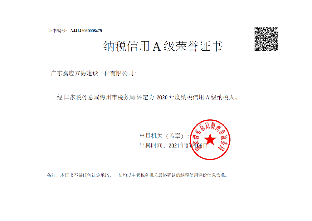熱烈慶祝我司獲得2020年納稅A級榮譽(yù)