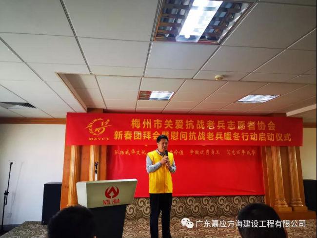 1月4日,梅州市關(guān)愛抗戰(zhàn)老兵志愿者協(xié)會召開新春團拜會暨慰問抗戰(zhàn)老兵暖冬行動啟動儀式,我司領(lǐng)導(dǎo)丘方作為公司代表應(yīng)邀出席此次大會。
